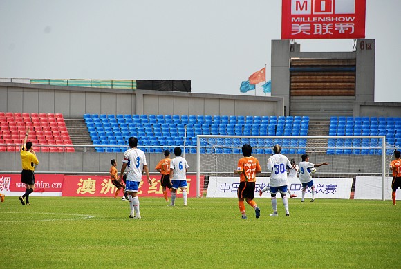 5分鐘后,川足21號滕彬接球,晃過對方門將后射門得手,但主裁判判越位在先,川足錯過領先的機會。