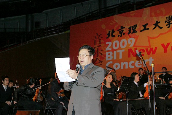 在音樂(lè)會(huì)開(kāi)始前,黨委副書(shū)記、副校長(zhǎng)楊賓發(fā)表了熱情洋溢的新年賀辭。他首先對(duì)廣大教職員工、廣大學(xué)生和離退休老同志致以新年的問(wèn)候和祝福,隨后他簡(jiǎn)要回顧了學(xué)校2008年在教學(xué)、科研、奧運(yùn)工作、基礎(chǔ)教育等方面取得的工作成績(jī)。最后,楊書(shū)記號(hào)召全校師生在新的一年里,統(tǒng)一思想、提高認(rèn)識(shí)、真抓實(shí)干、形成合力,促進(jìn)學(xué)校又好又快發(fā)展,向“國(guó)內(nèi)一流、國(guó)際知名”高水平研究型大學(xué)的建設(shè)目標(biāo)進(jìn)一步邁進(jìn),以各方面的優(yōu)異成績(jī)向建國(guó)60周年獻(xiàn)禮!