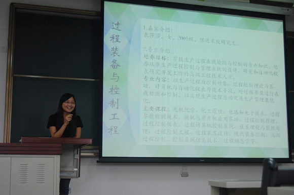 來自過程裝備與控制工程專業的袁莎莎為大家講述了本專業的研究方向、專業課設置和重難點課程的學習方法,并講解了自己保研的經歷、研究生的研究課題等。