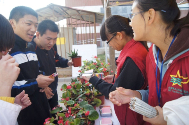 志愿服務不總是轟轟烈烈,更需要從身邊做起。延河之星志愿者們始終注重從身邊做起,服務校園,這其中最具代表性的應該當屬每年的迎新志愿服務活動。每到9月開學的季節,來自祖國各地的新同學們,最先感受到的就似乎來自北理工迎新志愿者們如火般的熱情,從火車站到校園中,志愿者們的服務無處不在,為新生們提供周到細致的服務。近年來,立足校園開展以環保為主題的志愿服務,也成為總隊工作的新方向。不論是參與全球“熄燈一小時”行動,在校園中倡導節能理念,還是以廢棄資源回收為主題,用綠色植物兌換再生資源的創意活動,再到組織開展校園生活大賣場,幫助同學們閑置資源的有效流通,都彰顯了延河之星志愿服務總隊緊跟時代主題、深化志愿服務內涵的使命感。又如開展的“我愛我北理”系列活動,送綠植進教室,檢查教室鐘表、網口,了解教室設備問題及時反饋管理處報修,方便師生的學習生活,志愿服務“潤物細無聲”。