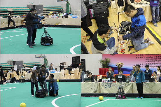 。。在本次大賽中,機器人中型組項目是一個傳統國際合作項目,以MAS(Multi-Agent System)和DAI(Distributed Artificial Intelligence)為主要研究背景,該項目的最終目標是:到2050年,開發完全自主仿人機器人隊,贏得人類足球世界冠軍隊。在本次大賽中,北京理工大學ROBIT代表隊參加了科學挑戰賽和技術挑戰賽。科學挑戰賽是一項學術交流性質很強的競賽,其設立的目的便是為了給參賽隊伍一個交流分享科研技術的平臺,大家通過展示對于當前存在問題的解決方案和未來發展方向的研究,從而起到推動機器人科學發展的作用。軟件科技創新創業基地機器人足球隊加入中型組已經有六年的歷史,在技術上一直不斷探索,精益求精。在科學挑戰賽中,ROBIT展示了他們在守門員系統方面的研究。在傳統的全景視覺守門員中,存在對球的定位不夠以及無法防守高空球等問題的解決。為了解決這些問題,球隊增加了kinect深度攝像頭來獲得場地的深度信息,通過深度信息輔助判斷從而準確預測球的運動路徑,進行更好的防守策略,并且增加了可升降桿,從而實現對高空球的防守。最終,ROBIT在此項目上名列季軍。