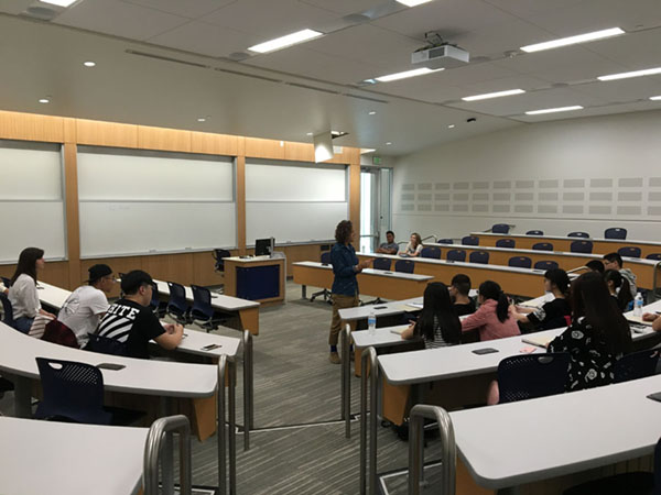 在課程學習模塊中,參訓學生在美國猶他州立大學亨茲曼商學院進行為期5天的課程學習。上午為語言課程學習,下午為經濟專業課程學習。語言課程充分考慮到中國學生語言薄弱的特點,每堂課均挑選了多名美國本土高年級學生作為語伴,在愉快寬松的環境中幫助參訓學生實現語言的有效強化訓練,課程實踐性強,學員在課程中不僅掌握了必要的英語語言知識、提升了英語運用能力,更和美國同學結下了深厚友誼。經濟專業課程由亨茲曼商學院Dwight Israelsen教授擔任主講,Israelsen教授以經濟學基本定義及原理為切入點,深入淺出的為參訓學生講授經濟學課程,幫助學員對經濟學的專業特點及專業知識體系有所了解。