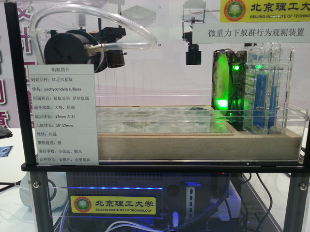 2016年1月,我院積極配合國家科工局,中國科協,探月中心以及學校關于月球探測載荷創意征集的號召,推薦“基于節點型開源SLAM的月球地貌繪制及自導航系統”“可擴展全自主植物培養裝置”“微重力蟻群群體行為觀測設備”三個作品進行評選,其中“微重力蟻群群體行為觀測設備”作品以其新穎的創意和合理的結構設計在全國257件作品中脫穎而出,進入全國二十強!該作品主要由培養器、供液組合、控制電路、溫控組件、觀測組合與支架結構組成,整機結構大小約為240mm×240mm×80mm,主要用于研究月球環境下,螞蟻探索未知區域空間的能力、尋找食物的能力并研究其相互協作,信息交流,方向指引等方式,同時研究短期月球飛行中,輻射、微重力、起飛降落等環境對螞蟻相關神經免疫基因影響。
