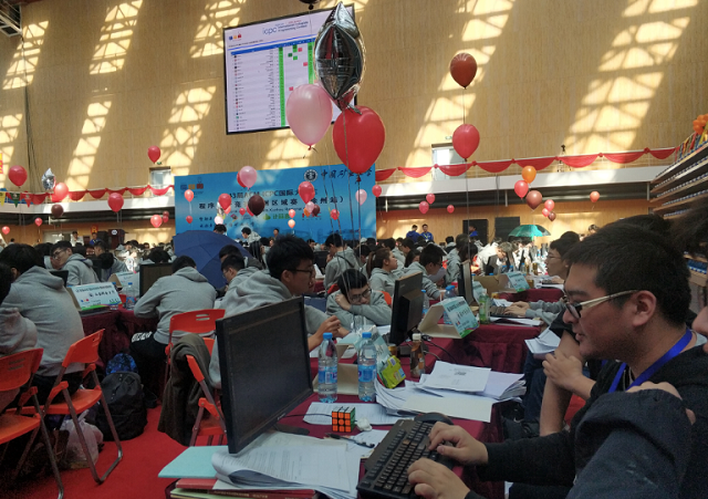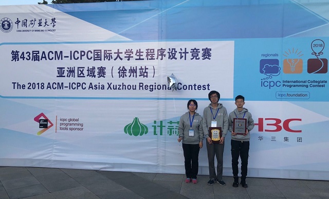 ACM國際大學生程序設計競賽(ACM International Collegiate Programming Contest)由美國計算機協(xié)會主辦,迄今已經成功舉辦了42屆,是世界上公認的規(guī)模最大、水平最高的國際大學生程序設計競賽。本次ACM-ICPC亞洲區(qū)域賽的徐州站比賽由中國礦業(yè)大學承辦,聚集了包括清華大學、北京大學、浙江大學、上海交通大學、南京大學等知名高校在內的166所高校、2所中學和1家企業(yè)參賽,288支參賽隊伍、863名程序設計精英在比賽現場展開了激烈的獎牌爭奪戰(zhàn)。其中由我校計算機學院三名2016級學生龍水彬、周赫斌和程苗苗組成的“肥宅大哭.jpg” 隊發(fā)揮穩(wěn)定,比賽中一直處于領先地位,從眾多參賽隊伍中脫穎而出,榮獲金牌和最快解題獎。這也是本年度我校ACM俱樂部繼南京賽區(qū)和沈陽賽區(qū)奪金后在此類賽事上累計榮獲的第三塊金牌!另兩只隊伍“北理六隊”和“摸魚肥宅”隊也分別依靠豐富的比賽經驗和不屈不撓的韌性奪得一塊銀牌和一塊銅牌。