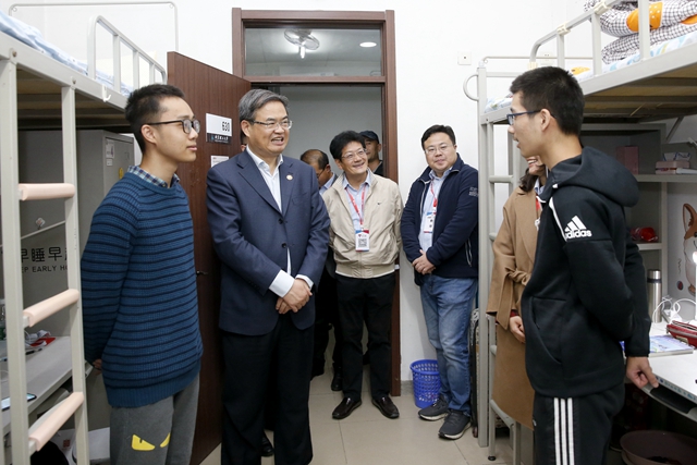 最后,校長抵達了特立書院社區,到博雅園學生宿舍看望新生。在強基班的630宿舍中,校長親切地詢問和了解了學生的情況后,語重心長地說到:“基礎課程是我國科學研究的重要基礎,今年是學校首次招收強基計劃學生,這意味著我校拔尖創新人才培養進入新的階段”。“強基固本、寰宇致遠”,“立報國志,將來為國家做貢獻”,校長對首屆強基班學生提出了殷切期望。