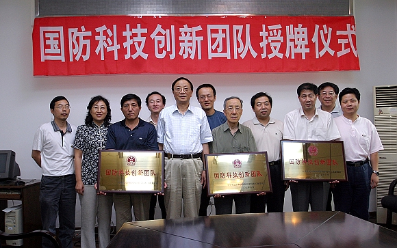 2007年8月2日下午,國防科技創新團隊授牌儀式在一號樓會議室舉行。授牌儀式由楊樹興副校長主持,匡鏡明校長為國防科技創新團隊帶頭人毛二可院士、馮順山教授、項昌樂教授頒發了“國防科技創新團隊”牌匾。參加儀式的還有信息學院仲順安院長、宇航學院栗萍副書記、機車學院左正興副院長、人事處趙文祥副處長、科技處陶然副處長等。