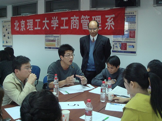 2008年10月25日下午,由中國管理科學(xué)學(xué)會企業(yè)管理專業(yè)委員會,中國房地產(chǎn)經(jīng)理人聯(lián)盟主辦,北京理工大學(xué)工商管理系承辦的“體驗中學(xué)習(xí)管理真諦”活動在北京理工大學(xué)國際教育交流大廈七層拉開帷幕。北京理工大學(xué)管理與經(jīng)濟學(xué)院工商管理系主任周畢文博士作為此次管理游戲活動的總教練,帶領(lǐng)與會的房地產(chǎn)界經(jīng)理和媒體朋友們在游戲中領(lǐng)悟管理的真諦,幽默的語言、發(fā)人深思的點評,不時引來陣陣掌聲和歡笑聲。