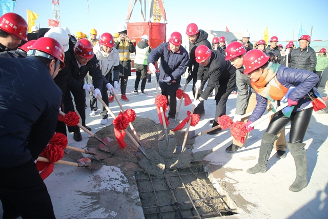 李和章致辭,對博士后宿舍樓項目順利封頂表示祝賀,感謝項目參建各方在項目建設過程中付出的辛勤努力。他表示,博士后宿舍樓是北京理工大學高端人才的公寓,是學校“雙一流”建設的配套工程。希望參建各方繼續同心合力,打造民生工程、溫馨工程、精品工程,提高學校博士后人才的獲得感與幸福感,為學校的“雙一流”建設貢獻力量。最后,李和章下達封頂指令,宣布博士后宿舍樓項目封頂,各參建單位代表揮鍬澆筑最后一方混凝土。