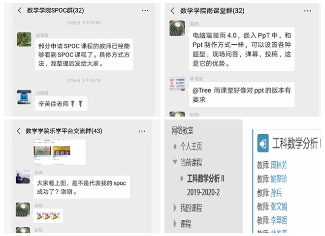根據學校疫情期間全面開展線上教學的要求,學院第一時間部署落實工作。數學學院承擔全校數學類基礎課程16門,覆蓋學生5000余人次,由于數學類公共課程實施在線教學存在理論性強、覆蓋學生廣、涉及網絡平臺多等特點,結合這一實際,學院積極研討,逐個攻破難題,整合教育資源,通過系列舉措保障了在線教學任務的高質量完成。