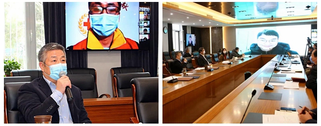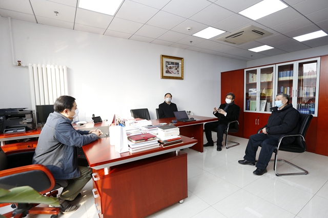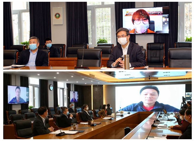 隨后,趙長祿、張軍與全國模范教師、機械學院教師薛慶和身處武漢、堅持開展線上教學的機電學院教師陳學超進行了視頻連線,了解了他們線上教學的準備情況,并特別慰問了陳學超老師的生活和健康情況,囑咐他和家人做好居家防護,保持良好的健康狀態。