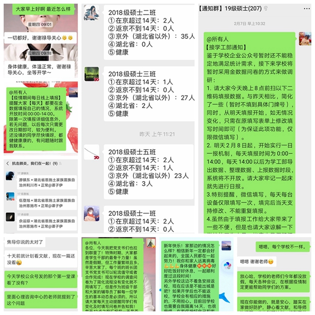 學院建立起“學院副書記-輔導員-學生骨干-學生”的協同工作體系,落實網格化管理,每日統計、上報學生信息,精準掌握千余名學生的實時動態,關注學生身心健康,維護安全穩定。
