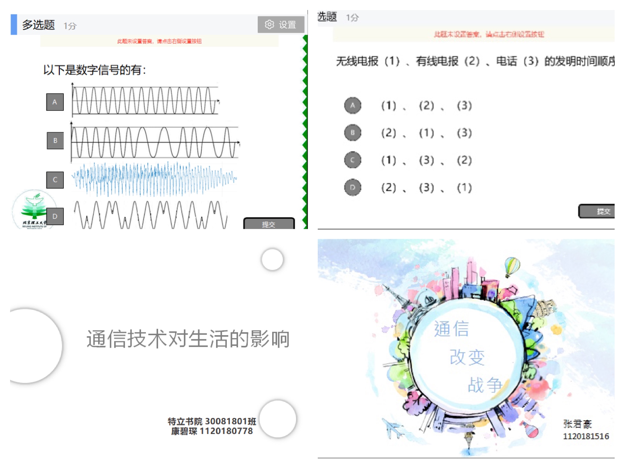 學生作業實例與線上教師提問實例