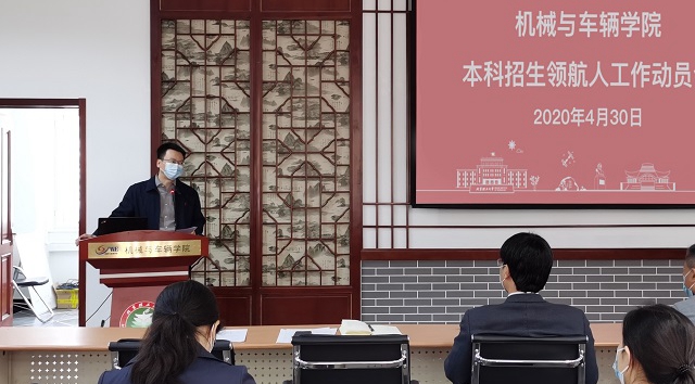 為進一步貫徹落實學校本科招生工作會議精神,全面推進疫情防控新形勢下內蒙、湖南兩地招生宣傳工作高效有序開展,4月30日,機械與車輛學院召開了2020年本科招生工作動員會。教務部副部長范文輝,學院院長姜瀾、黨委書記馮慧華、副院長黃彪出席會議,學院招生工作組三十余位領航人到場參會。會議由學院黨委副書記、副院長孫碩主持。
